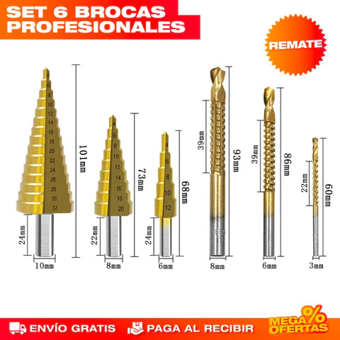 SET DE 6 BROCAS ESCALONADAS DE TITANIO ✔️