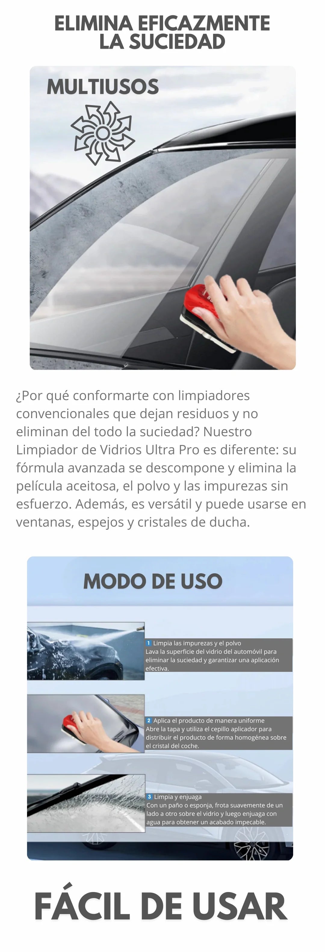 Sí, el Limpiador de Vidrios Ultra Pro es apto para parabrisas, ventanas, espejos y otras superficies de vidrio sin dañarlas.