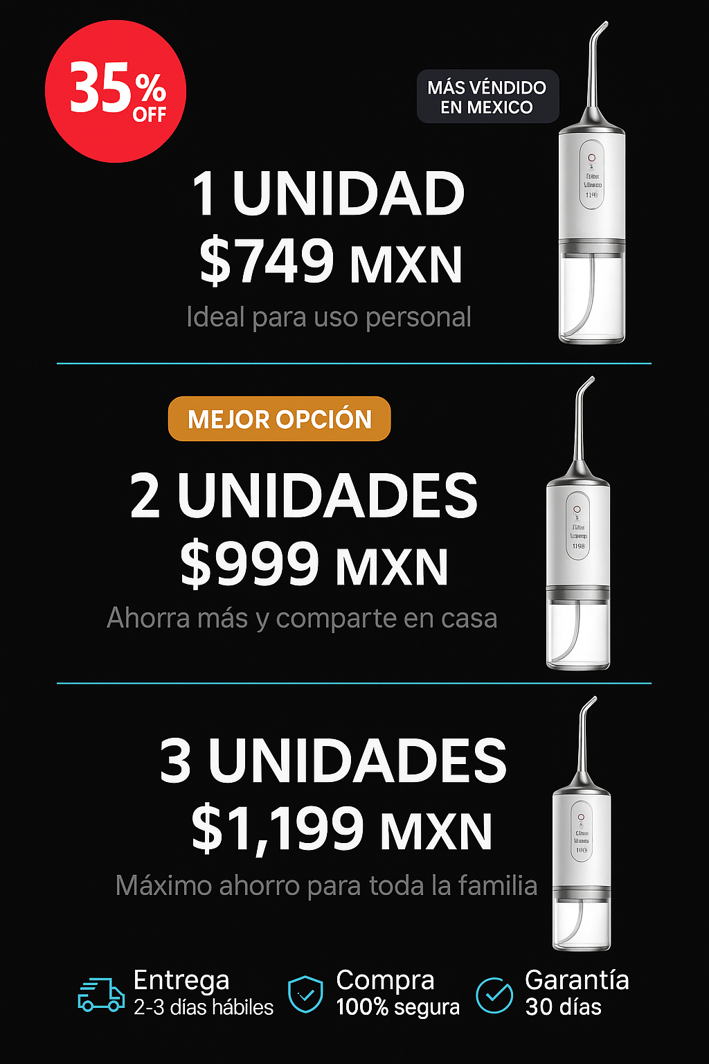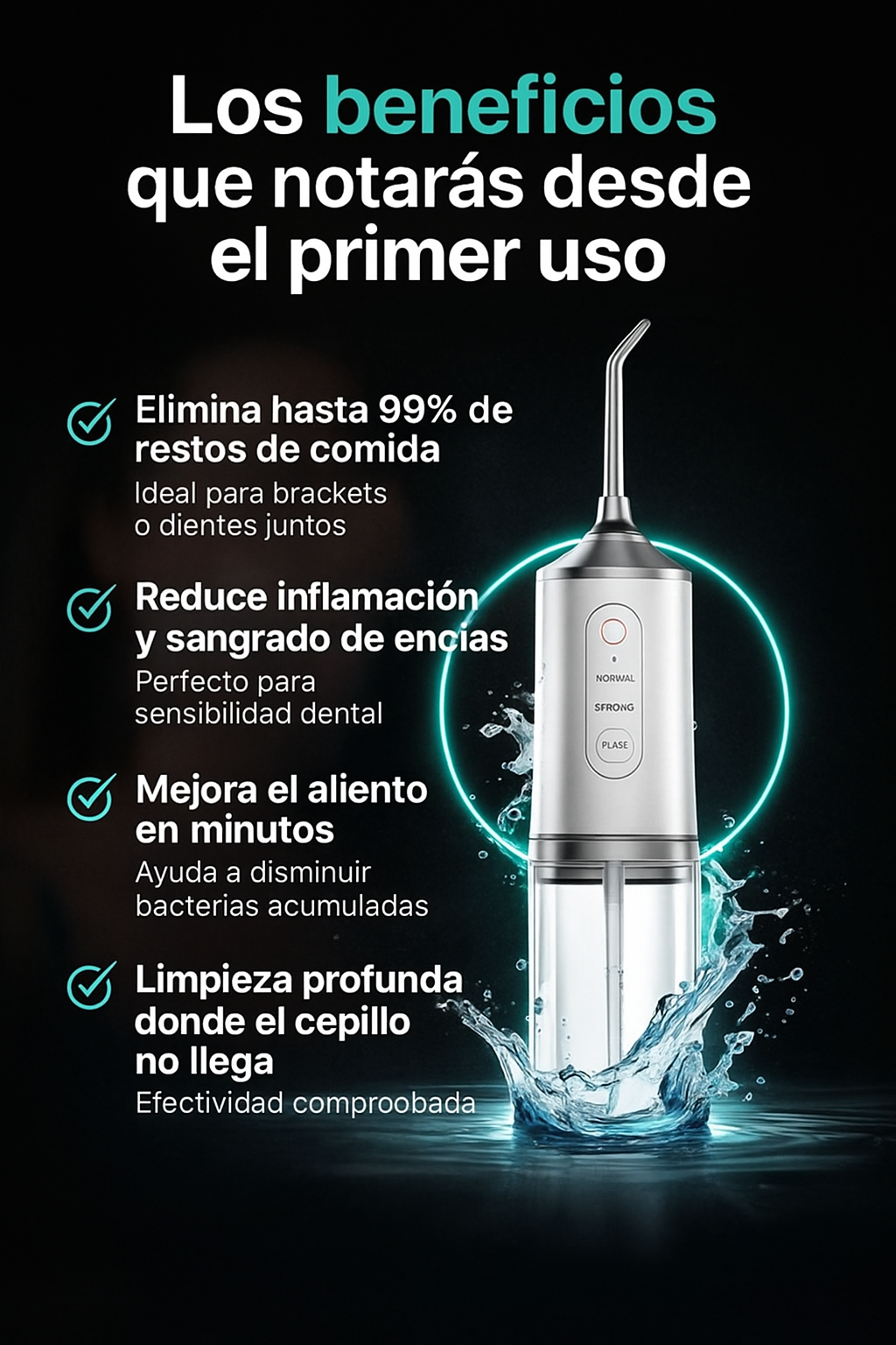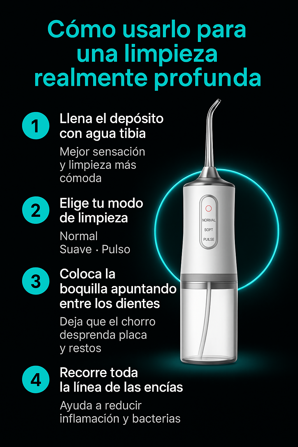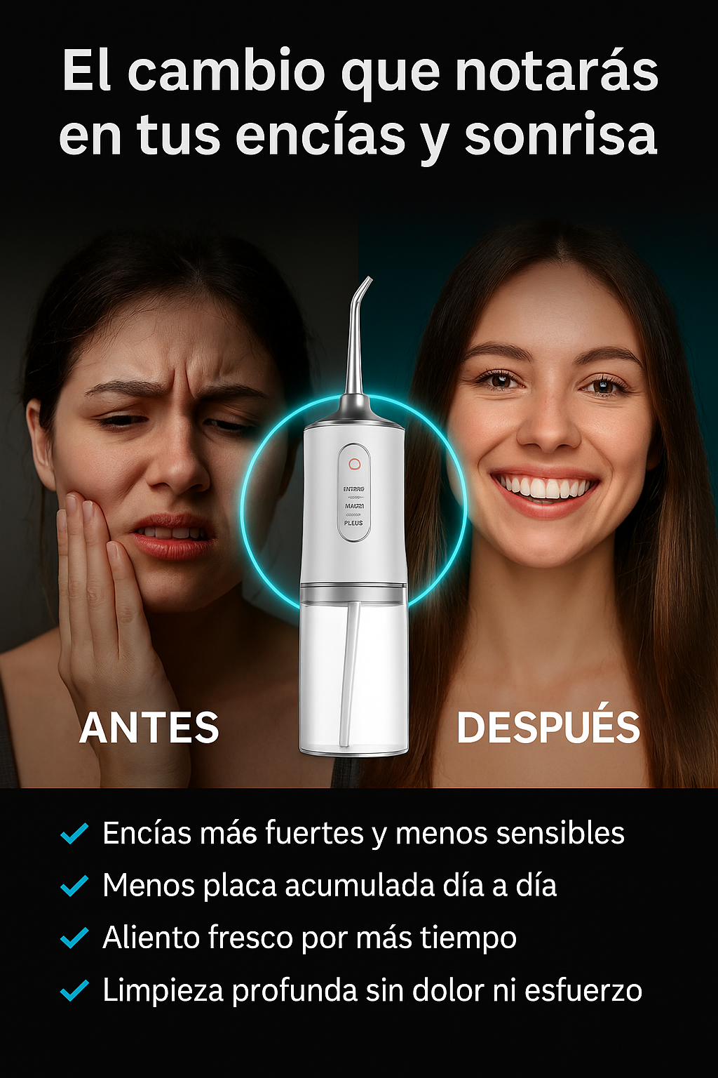 Tenía las encías súper sensibles y sangraban al cepillarme. Con este irrigador en pocos días sentí mucha diferencia y ahora mi sonrisa se ve muchísimo mejor.