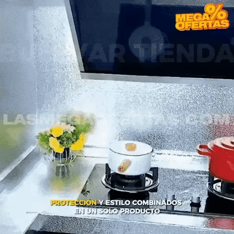 Esta lámina protectora evitará que el calor, humedad, polvo, grasa o el aceite dañen o manchen tu cocina, gabinetes, artefactos, mostradores y paredes, permitiendo de esta manera conservarlos en su mejor estado y alargar su vida útil.
