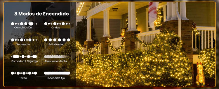 Gracias a su certificación IP65, las luces resisten lluvia, sol, viento y nieve. Ideales para decorar árboles, jardines, terrazas o fachadas durante todo el año.