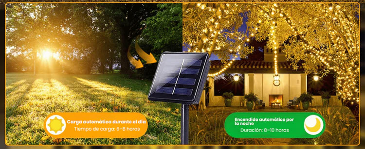 Nuestras luces solares cargan automáticamente durante el día (6–8 horas) y se encienden solas al anochecer,