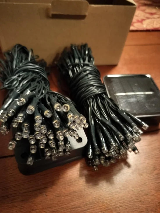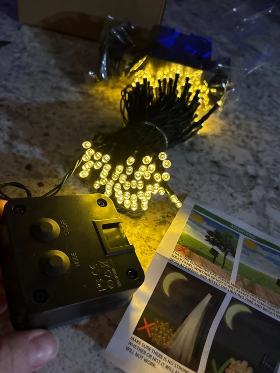Luces Solares Navideñas de 12 m con 100 LED, 8 modos de iluminación y protección IP65.